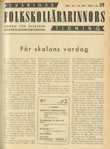 - Folkskollärarnas tidning, Libris: 1920–1956, TAM: 1950.