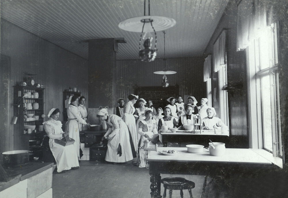 Under 1800-talets sista decennier uppmärksammades olika sociala problem i det svenska samhället. Pedagoger vid den tiden ansåg att fattigdom delvis kunde avhjälpas genom bättre kunskaper och färdigheter i hushållsgöromål och undervisning i matlagning, eller huslig ekonomi, fick långsamt insteg i skolorna. Undervisning påbörjades i allt fler flickskolor och folkskolor i storstäderna och det upprättades särskilda skolkök för bespisning av fattiga barn.